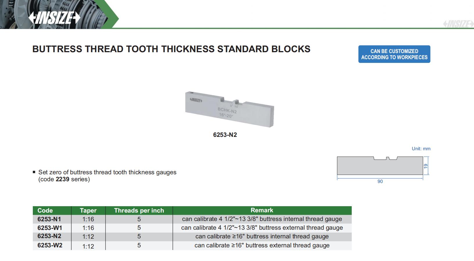 Buttress Thread Tooth Thickness Standard Blocks